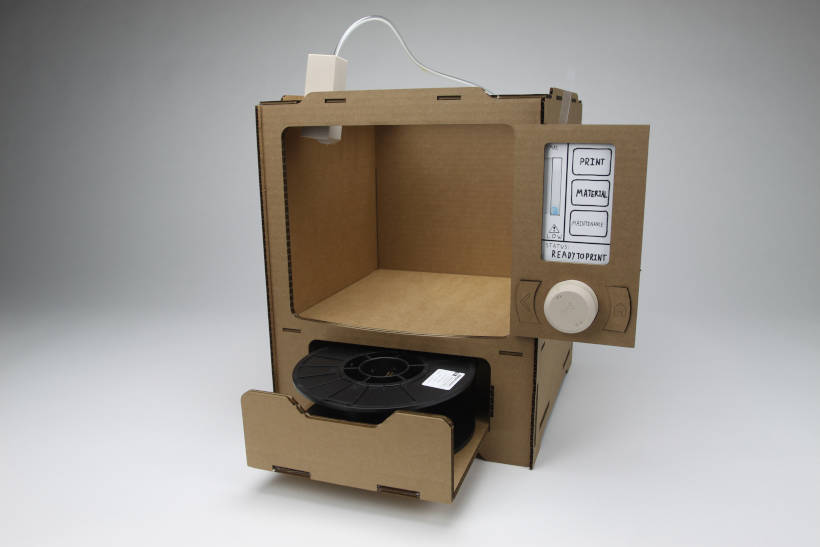 Beim Cardboard-Prototyping bastelst du deinen Prototyp einfach aus Pappe! Hier im Beispiel: Ein 3D-Drucker (Quelle: https://bit.ly/2QZlcWP)