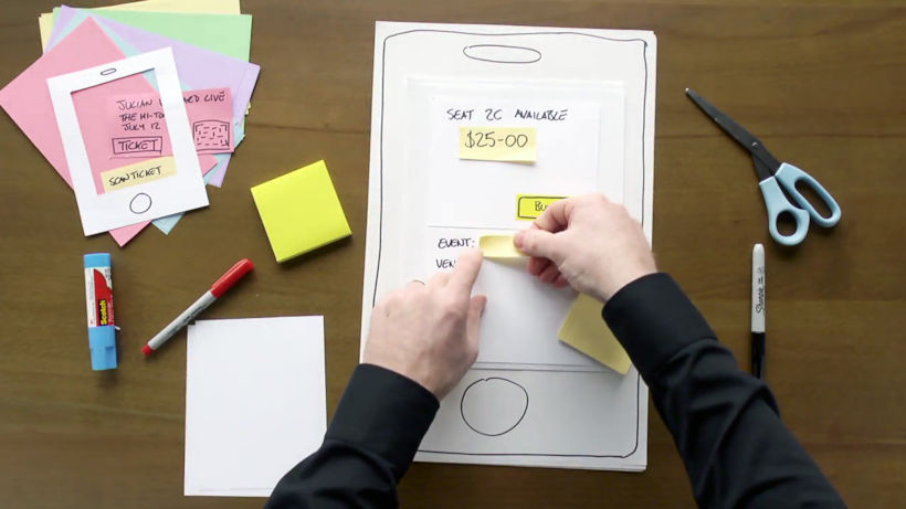 Beim Paper-Prototyping erstellst du den ersten Entwurf deines Produkts einfach aus Papier! (Quelle: https://bit.ly/2QXcLez)