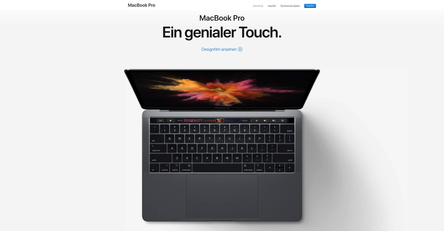 Ein Beispiel für eine Landing Page, die das Produkt perfekt in den Fokus rückt, ist die Landing Page von Apple für das MacBook Pro.