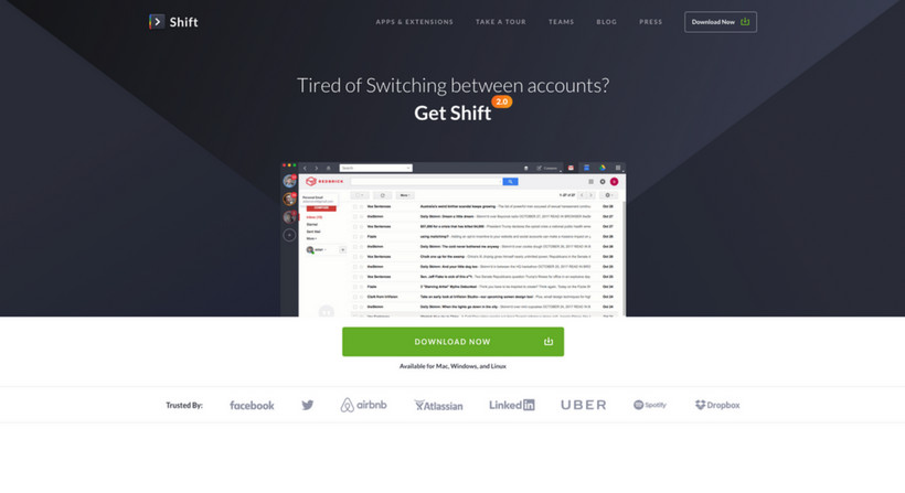 Shift weist unterhalb des Hero Shot auf andere Unternehmen hin, die ihr Tool bereits nutzen. Eine einfache Maßnahme, die Eindruck schindet und Vertrauen schafft. (Quelle: tryshift.com).