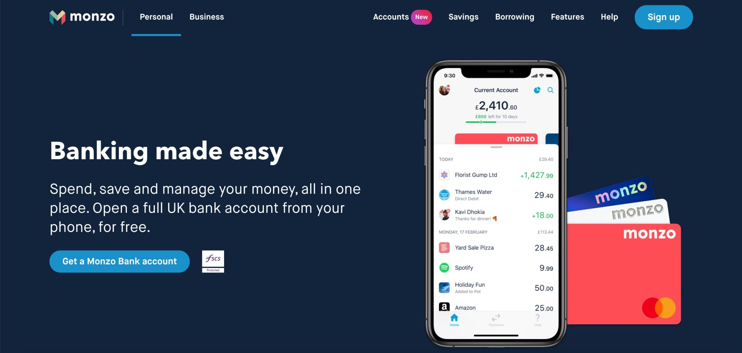 Monzo ist ein englisches Startup, das 2015 gegründet wurde und zunächst eine Prepaid-Debitkarte auf den Markt gebracht hat. Dadurch wurde Kunden ermöglicht, ihr Konto nicht zu überziehen und ihr Geld besser einzuteilen. Durch die Gewohnheit, sein Smartphone für alles zu nutzen, hat den Gründer Jonas Huckestein dazu veranlasst, mit Monzo eine mögliche Disruption zu entwickeln, die Banking vereinfachen soll.