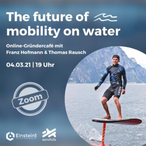 Das Gefühl erinnert an eine Mischung aus Snowboarden im „Powder“ und Fliegen. Unabhängig von Wind und Welle. Die beiden Freunde Franz Hofmann (Gründer) und Thomas Rausch (Standortleiter Franken) erzählen live im Gründercafé die Geschichte der Aerofoils GmbH und welche spannende Reise noch vor Ihnen liegt. Das Startup kombiniert die Expertise der Gründer aus Luftfahrt und automobiler Entwicklung und setzt dabei weltweit neue Maßstäbe mit ihrem vollintegriertem Antriebskonzept. Mit ihrer Vision und Leidenschaft zu Sport und Innovation versuchen Sie die Zukunft des Surfens aktiv mitzugestalten.