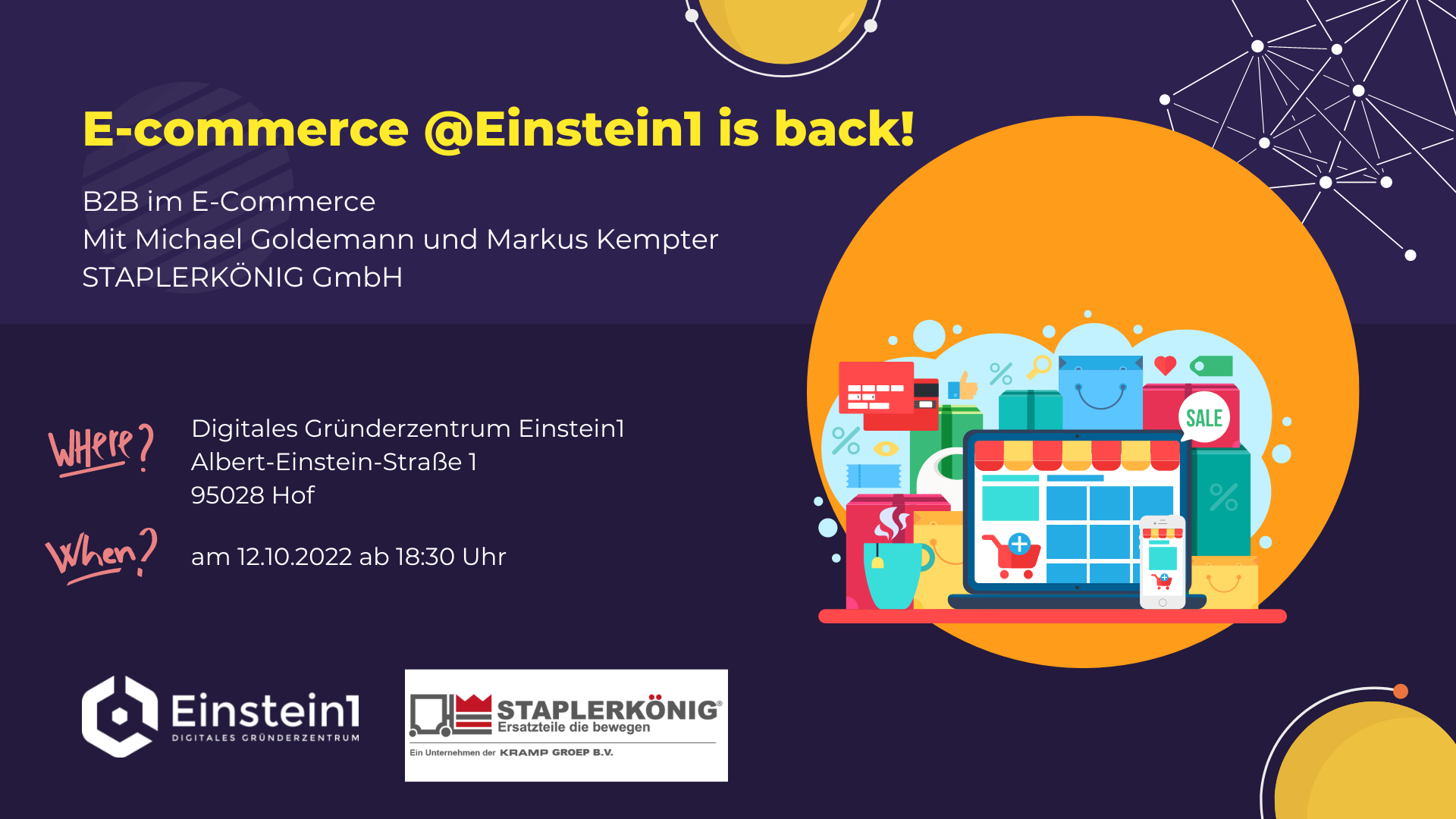 …doch mit der Veranstaltung “B2B im E-Commerce” findet gleich eine ganze Einstein1-Eventserie ihren Anfang! Zukünftig wird es in regelmäßigen Abständen verschiedene Veranstaltungsformate rund im digitale Geschäftsmodelle im Onlinehandel geben, um diese Business-Form in der Region Hochfranken nachhaltig voranzubringen.