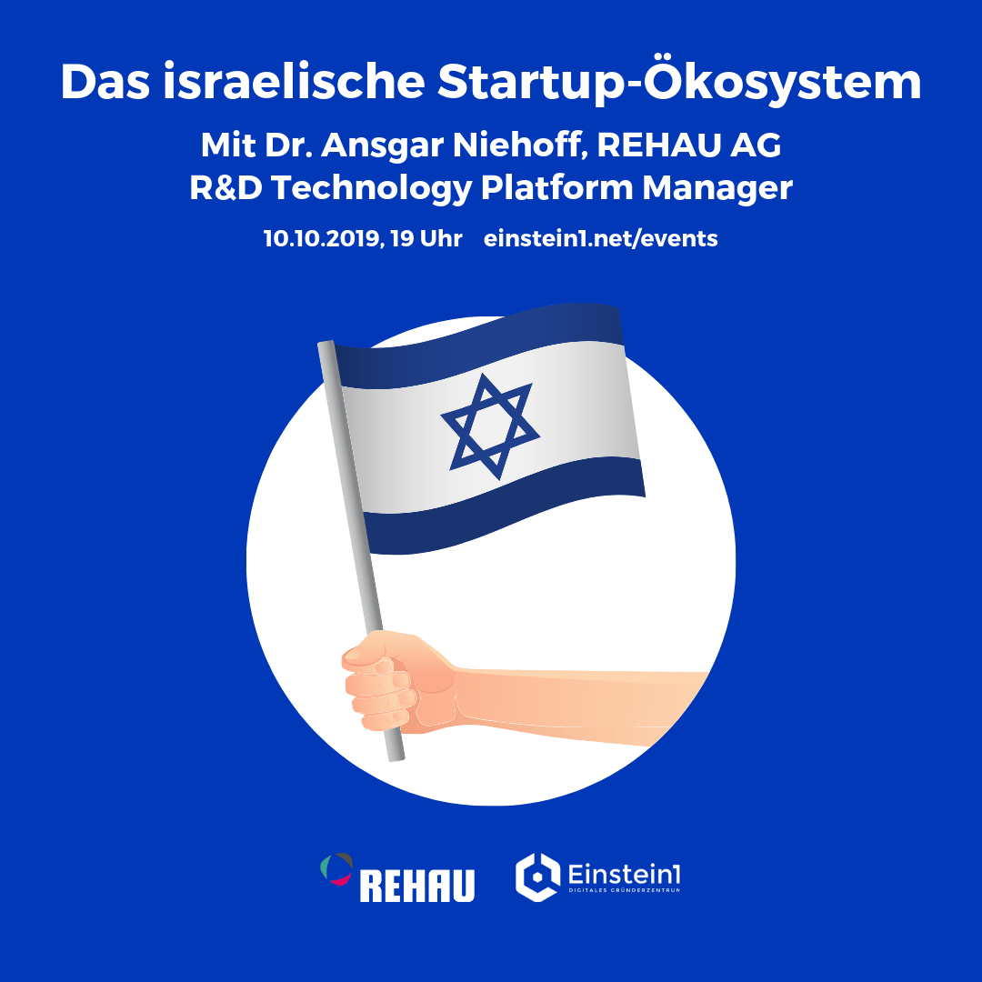 Am Donnerstag, den 10.10.2019 um 19 Uhr, lädt das Digitale Gründerzentrum Einstein1 zum kostenlosen Vortrag “Das israelische Startup-Ökosystem” mit Dr. Ansgar Niehoff von REHAU ein.