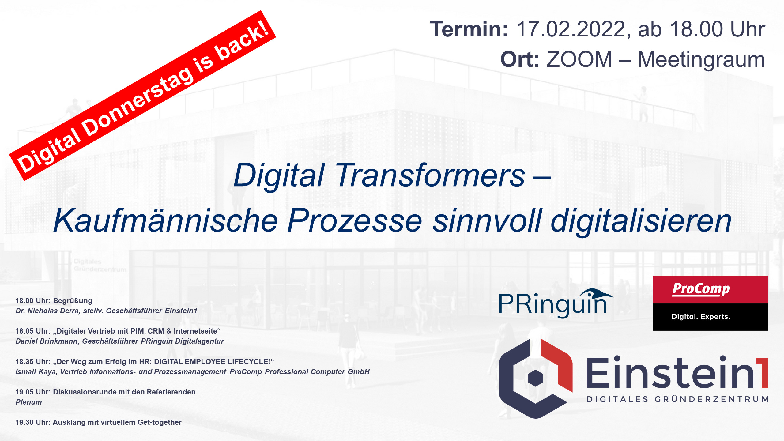 Gehen Sie zusammen mit dem Einstein1 sowie hochkarätigen Experten auf eine spannende Reise rund um erfolgreiche Digitalisierungsstrategien und lernen Sie anhand anschaulicher Beispiele aus der Unternehmenspraxis hilfreiche Tools kennen.