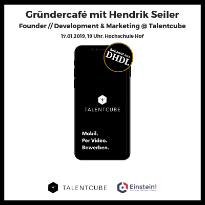 Am Digital Donnerstag, den 17.01.2019 um 19 Uhr, lädt das Digitale Gründerzentrum Einstein1 zum kostenlosen Gründercafe mit Hendrik Seiler von Talentcube ein.
