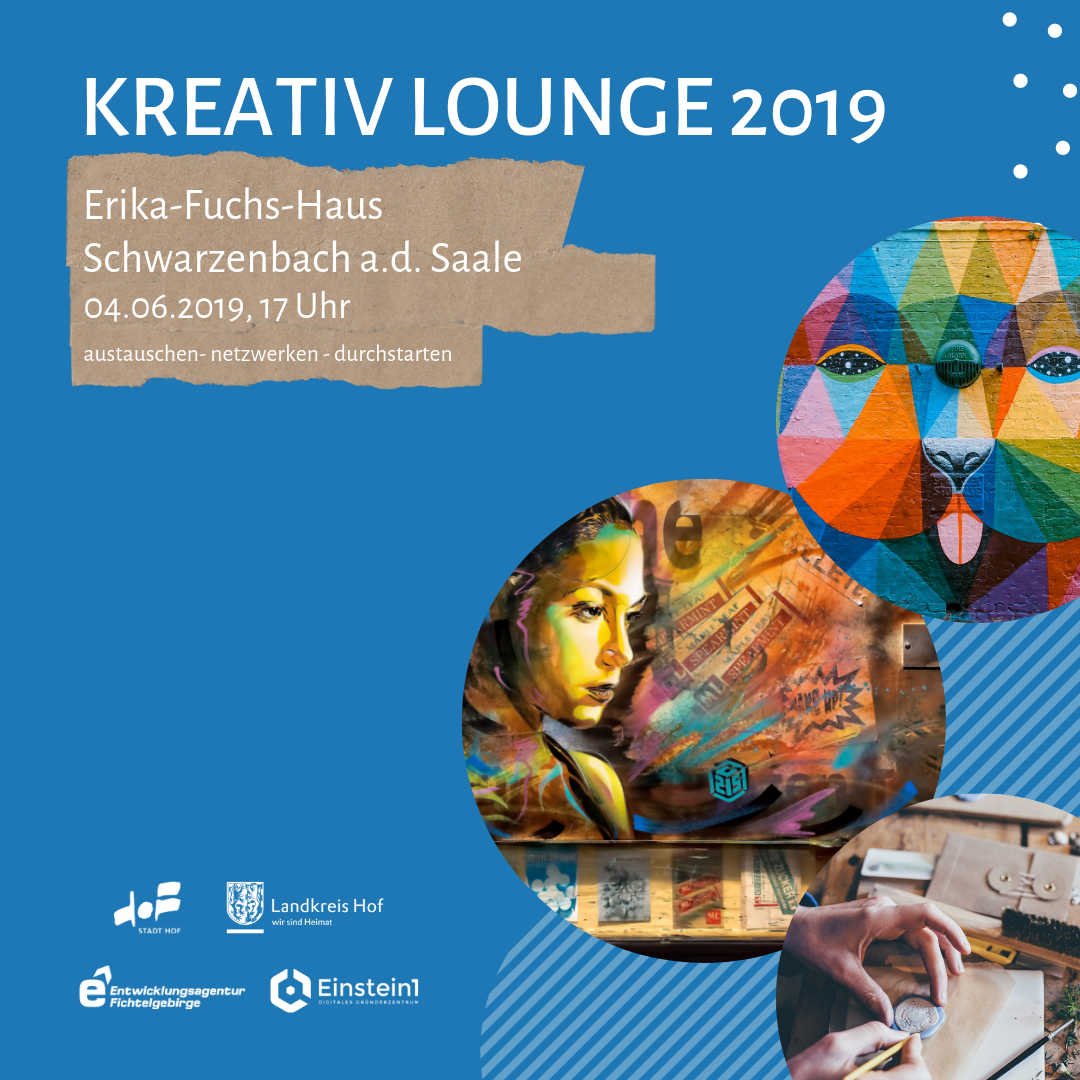 Am Dienstag, den 04.06.2019 um 17 Uhr, laden die Stadt Hof, der Landkreis Hof, der Landkreis Wunsiedel i. Fichtelgebirge und Einstein1 herzlich zur Kreativ Lounge 2019 ein.