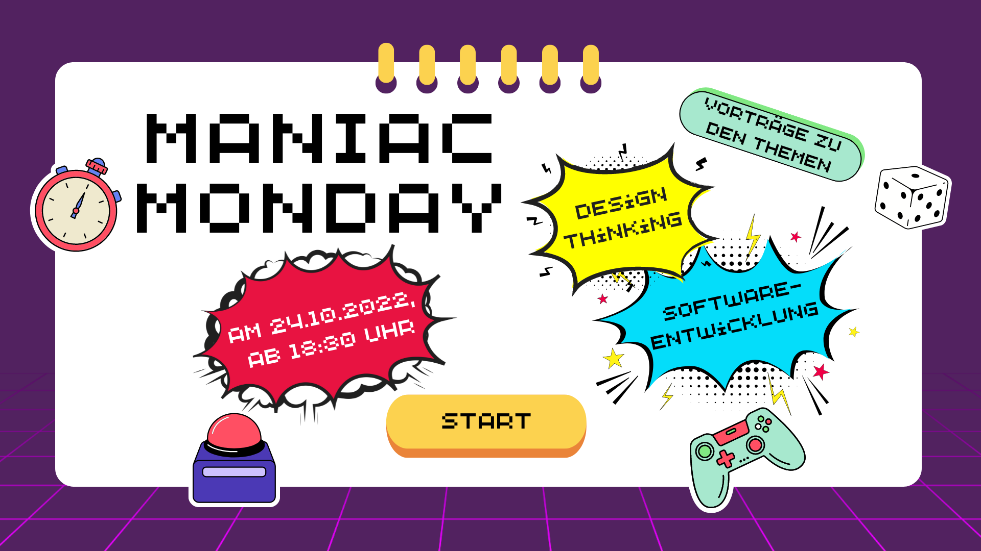 Willkommen beim Maniac Monday, organisiert vom Einstein1 gemeinsam mit der Universität Bayreuth sowie dem BF/M-Bayreuth. Jeden letzten Montag im Monat erwartet euch ab 18.30 Uhr ein spannender Abend mit informativen Vorträgen und einem einzigartigen Networking im Anschluss.