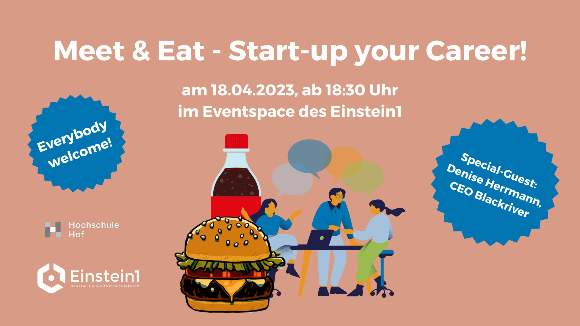 Wir – das Einstein1 Gründerzentrum gemeinsam mit dem StartUpLab und dem Career Service der Hochschule Hof – wollen Euch mit der Eventserie „Meet & Eat – Start-up your Career!“ für die Gründung selbst, sowie das Arbeiten in Start-ups als wertvolle Alternativen für die berufliche Karriere sensibilisieren; saugt dabei unter anderem das Mindset vom Einstein1 und dem StartupLab der Hochschule auf und genießt zudem in entspannter Brown-Bag-Atmosphäre interessante Beiträge rund um Gründungen als Karriereweg!