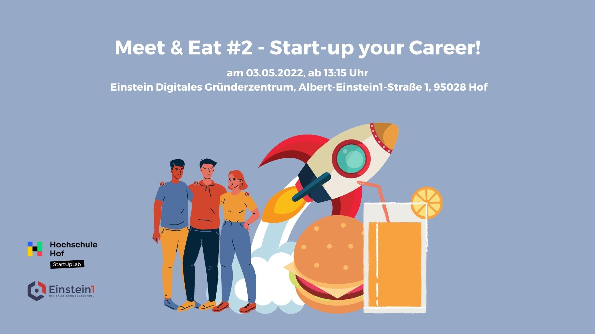 Wir – das Einstein1 Gründerzentrum gemeinsam mit dem StartUpLab und dem Career Service der Hochschule Hof – wollen Euch mit der neuen Eventserie Meet & Eat – Start-up your Career! für die Gründung selbst sowie das Arbeiten in Start-ups als wertvolle Alternativen für die berufliche Karriere sensibilisieren; saugt dabei unter anderem das Mindset vom Einstein1 und dem Makerspace der Hochschule auf und genießt zudem in entspannter Brown-Bag-Atmosphäre interessante Beiträge rund um Gründungen als Karriereweg!