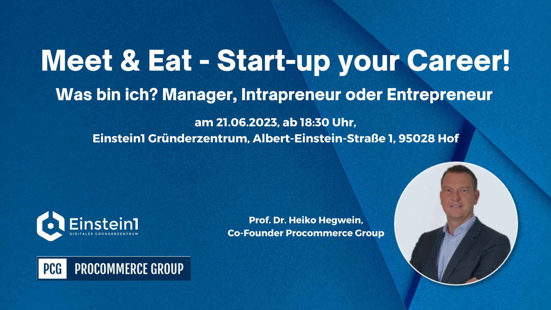 Wir – das Einstein1 Gründerzentrum gemeinsam mit dem StartUpLab und dem Career Service der Hochschule Hof – wollen Euch mit der Eventserie „Meet & Eat – Start-up your Career!“ für die Gründung selbst, sowie das Arbeiten in Start-ups als wertvolle Alternativen für die berufliche Karriere sensibilisieren; saugt dabei unter anderem das Mindset vom Einstein1 und dem StartupLab der Hochschule auf und genießt zudem in entspannter Brown-Bag-Atmosphäre interessante Beiträge rund um Gründungen als Karriereweg! Am 21.06.2023 laden wir alle Interessierten ganz herzlich ab 18:30 Uhr ins Einstein1 ein, um interessanten Gründer:innen zu lauschen und deren spannende Stories zu hören – gegenseitiges Kontaktknüpfen und Snacks inklusive.