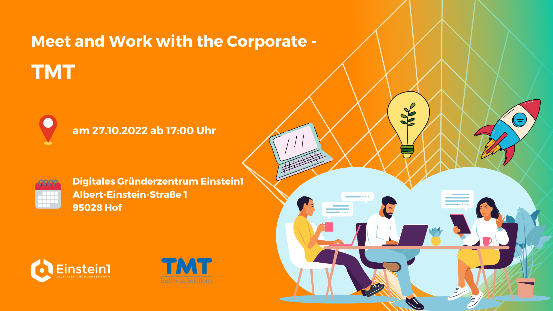 Innovative Köpfe aufgepasst – Es gibt wieder eine Ausgabe der neuen Einstein1-Eventserie „Meet & Work with the Corporate“, bei der sich etablierte Unternehmen aus der Region mit Young Talents der Hochschulen, Start-ups und weiteren interessanten Stakeholdern vernetzen und in den gegenseitigen Austausch treten!