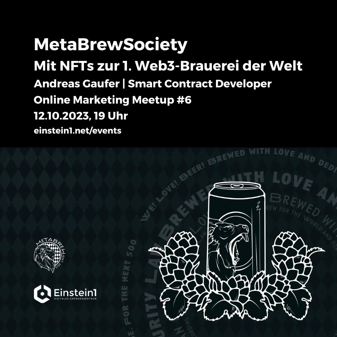 Am Digital Donnerstag, den 12.10.2023 um 19 Uhr, lädt das Digitale Gründerzentrum Einstein1 zum Online-Marketing Meetup #6 mit Andreas Gaufer von MetaBrewSociety, der ersten Web3-Brauerei der Welt, ein.