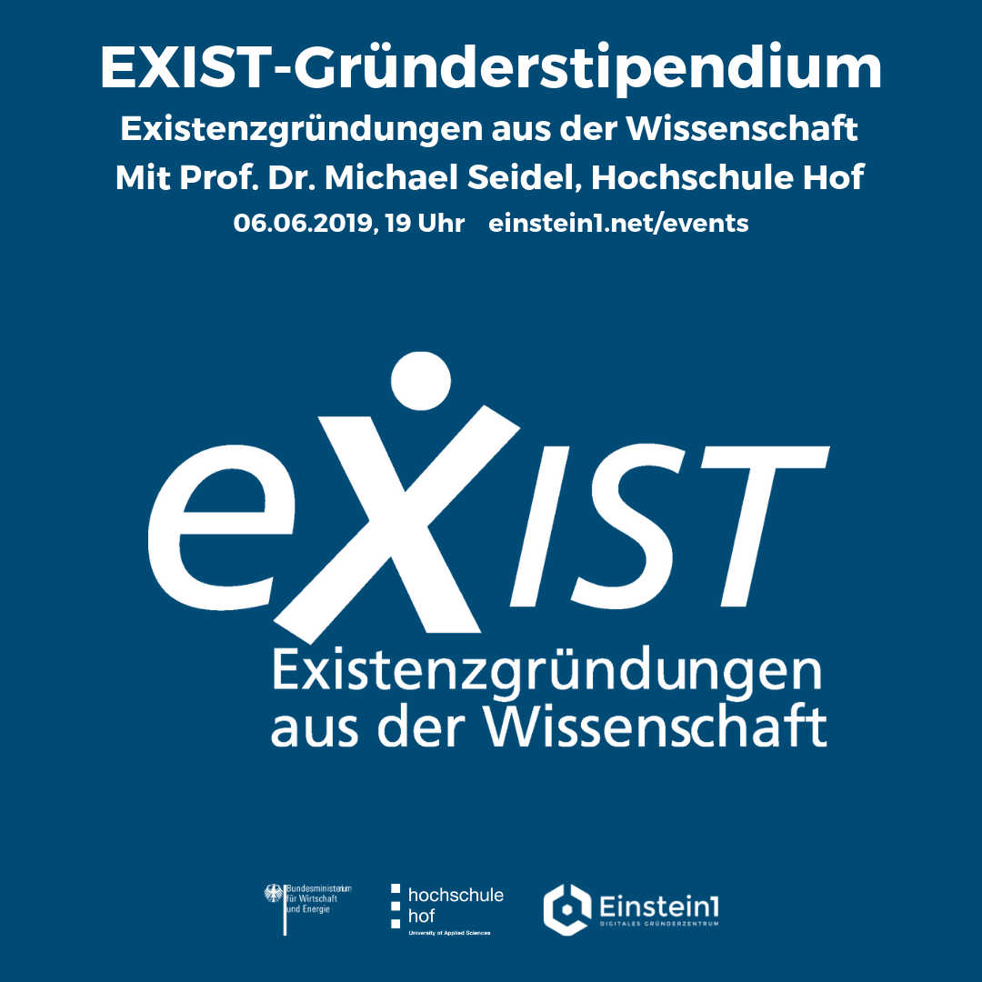 Am Digital Donnerstag, den 06.06.2019 um 19 Uhr, lädt die Hochschule Hof und das Digitale Gründerzentrum Einstein1 zum kostenlosen Info-Vortrag „Das EXIST-Gründerstipendium“ mit Prof. Dr. Michael Seidel ein.