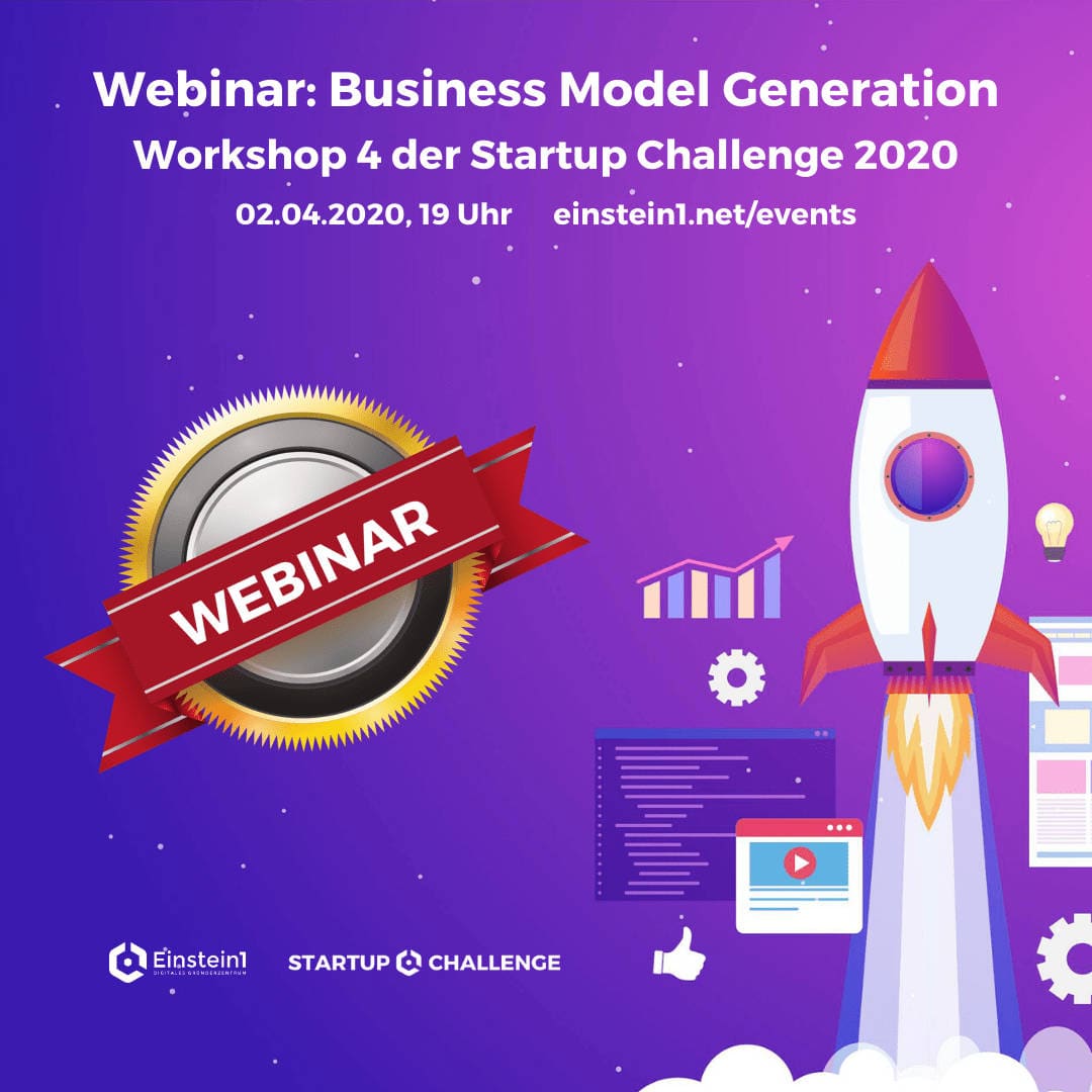 Am Donnerstag, den 02.04. ab 19 Uhr, veranstaltet Einstein1 als Ersatz für den eigentlich geplanten Live-Workshop ein Webinar zum Business Model Generation Workshop der Startup Challenge 2020.
