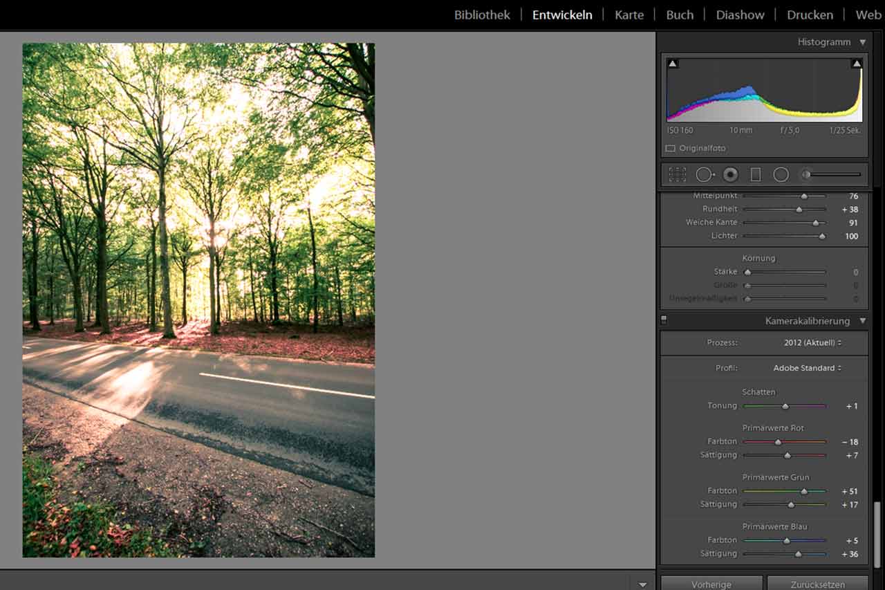 Bei der Kamerakalibrierung werden die Farbtöne erneut angepasst und aufeinander abgestimmt. Hier kannst du einiges ausprobieren, oft findet man hier noch die ein oder andere interessante Lösung.