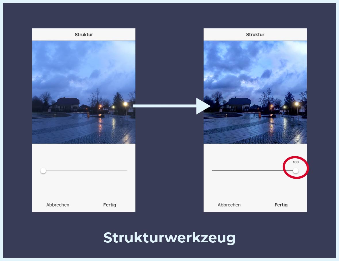 Instagram Bilder bearbeiten Strukturwerkzeug