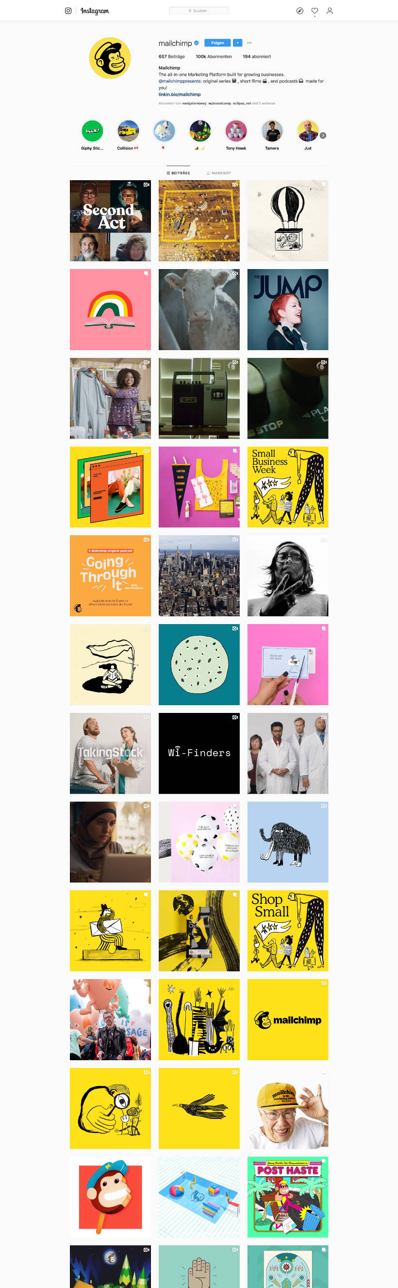 MailChimp ist ein gängiges Tool im E-Mail-Marketing, vor allem für den Business-Bereich. Du würdest das aber nicht unbedingt vermuten, wenn du das Unternehmen noch nicht kennst und dir deren Instagram-Account zum ersten mal ansiehst.