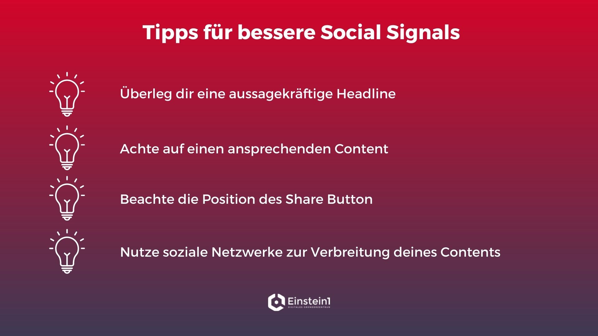 Auch ohne den Rankingfaktor sind Social Signals ein Maßstab für guten Inhalt. Wenn die Postings viele Likes bekommen und die Webseite viele Interaktionen hat, kannst du normalerweise davon ausgehen, dass der Content von der Community gern gesehen wird.